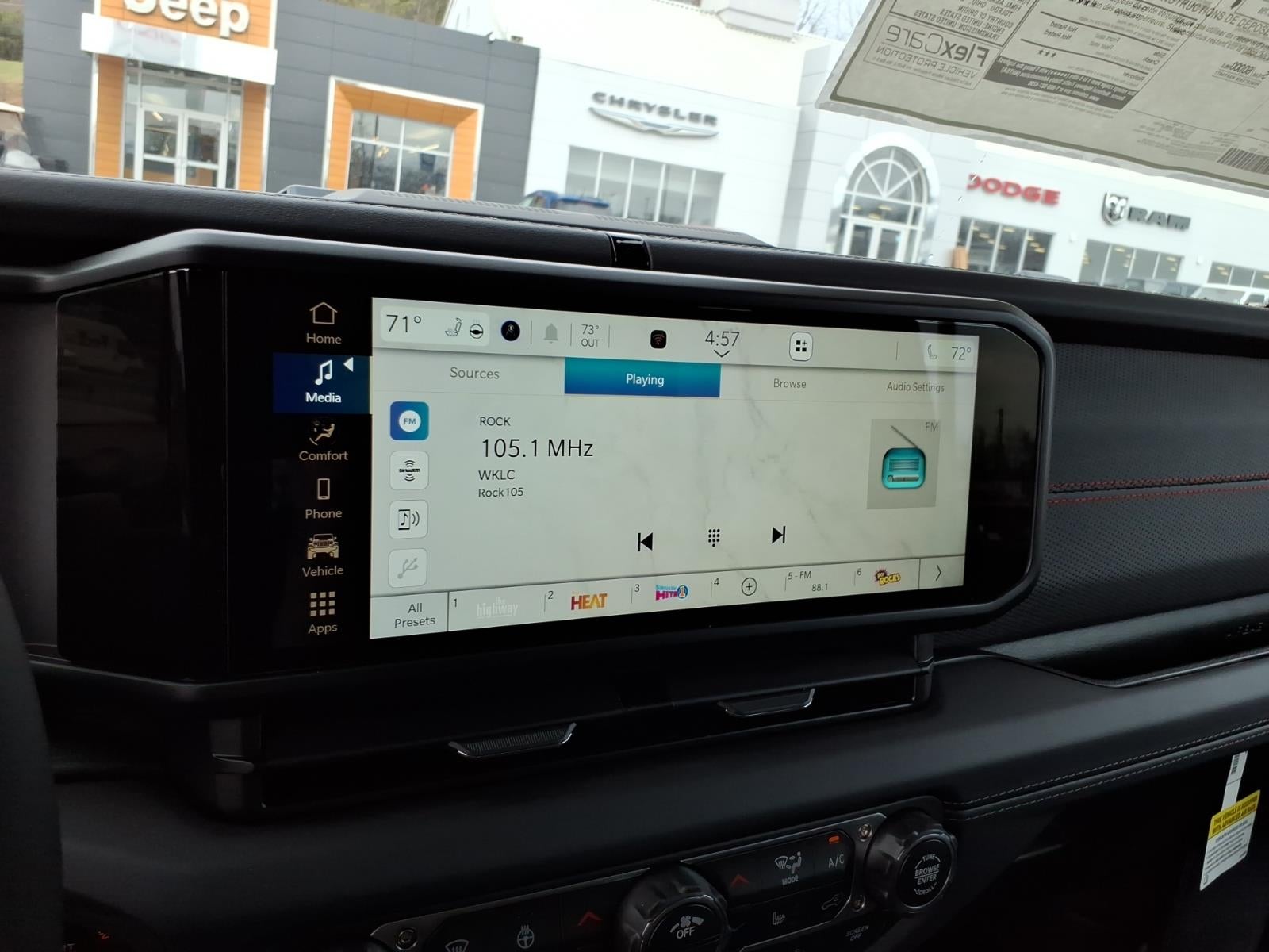 - Radio w/Seek-Scan, Clock, Speed Compensated Volume Control, Aux Audio Input Jack, Steering Wheel Controls, Voice Activation, Radio Data System and Uconnect External Memory Control